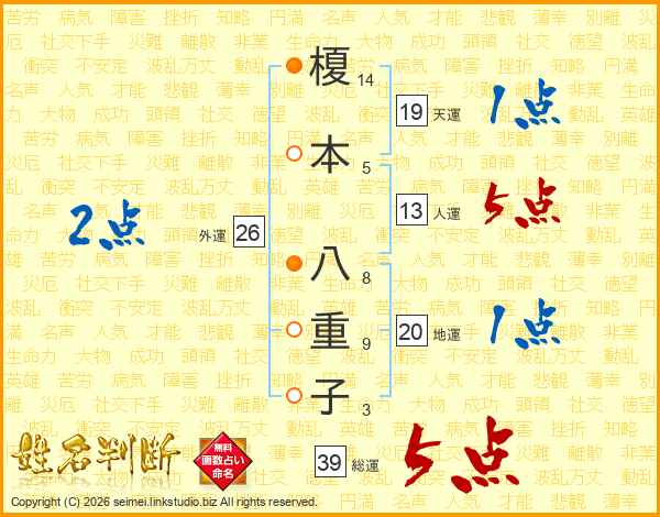 榎本八重子さんの総運は39画の5点!