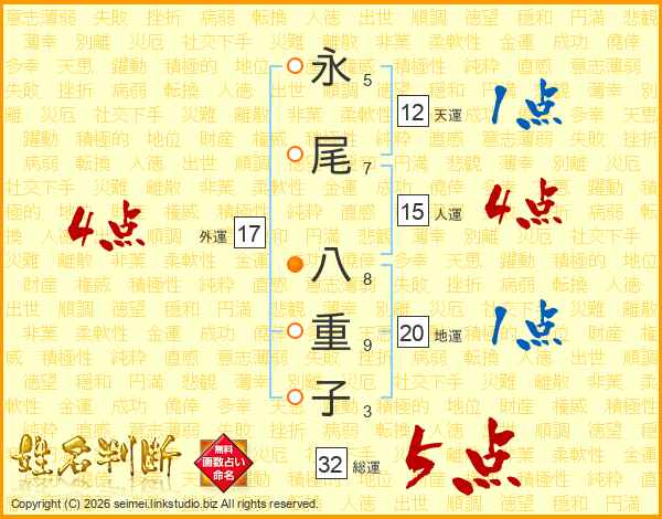 永尾八重子さんの外運は17画の4点!