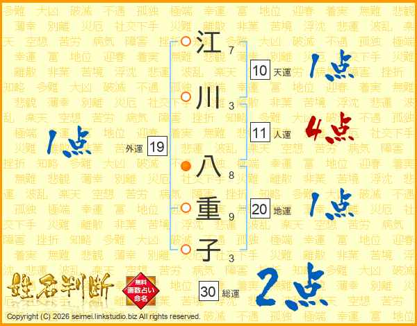 江(7画)川(3画) 八(8画)重(9画)子(3画)