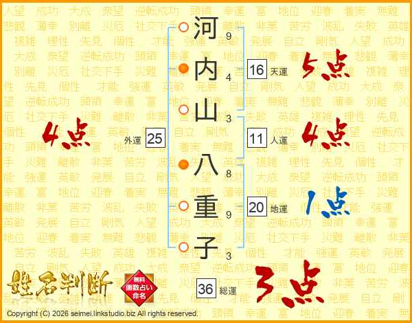 河内山八重子さんの総運は36画の3点!