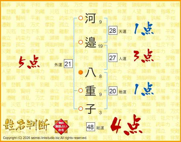 河邉八重子さんの外運は21画の5点!