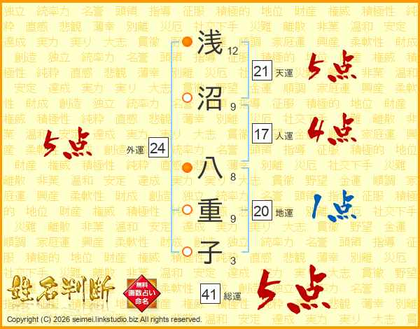 浅沼八重子さんの外運は24画の5点!