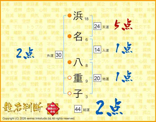浜(18画)名(6画) 八(8画)重(9画)子(3画)