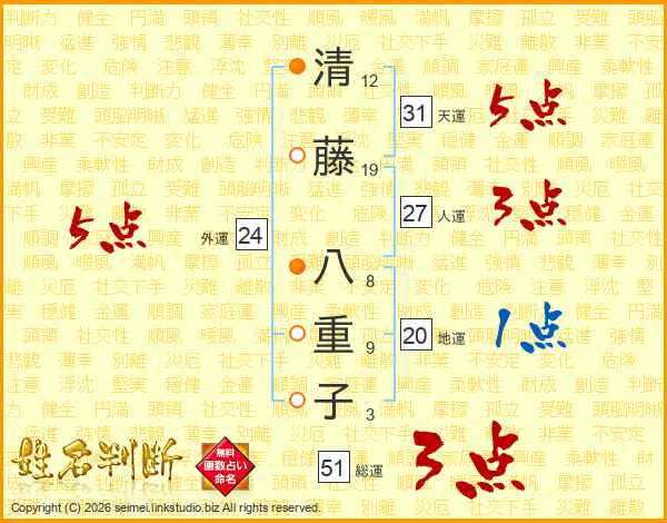 清藤八重子さんの外運は24画の5点!