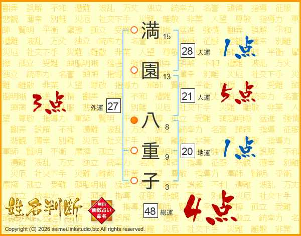 満園八重子さんの総運は48画の4点!