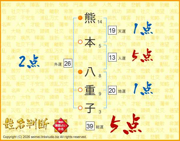 熊本八重子さんの総運は39画の5点!