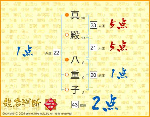真殿八重子さんの総運は43画の2点!