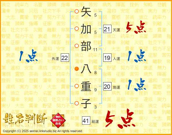 矢加部八重子さんの総運は41画の5点!