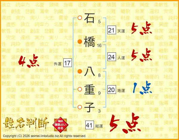 石橋八重子さんの総運は41画の5点!