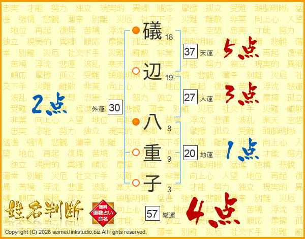 礒辺八重子さんの総運は57画の4点!
