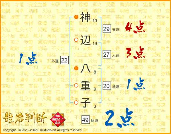 神辺八重子さんの総運は49画の2点!