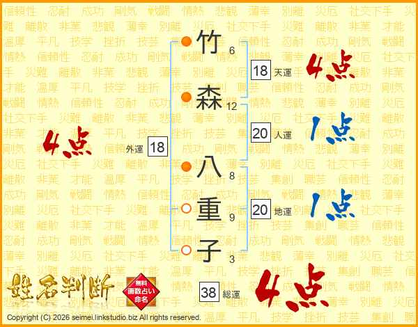 竹森八重子さんの総運は38画の4点!
