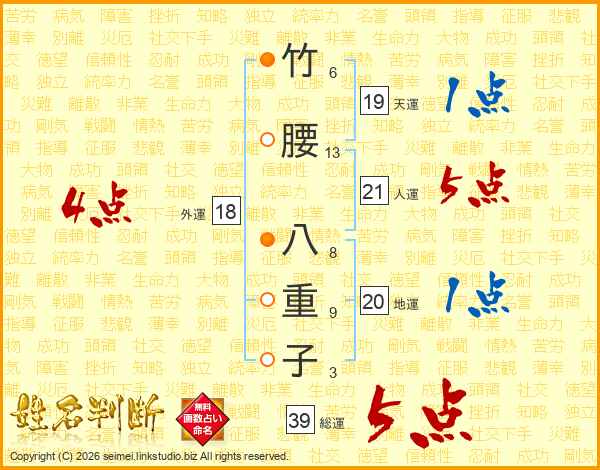 竹腰八重子さんの総運は39画の5点!