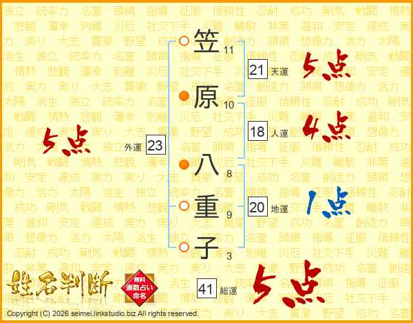 笠(11画)原(10画) 八(8画)重(9画)子(3画)