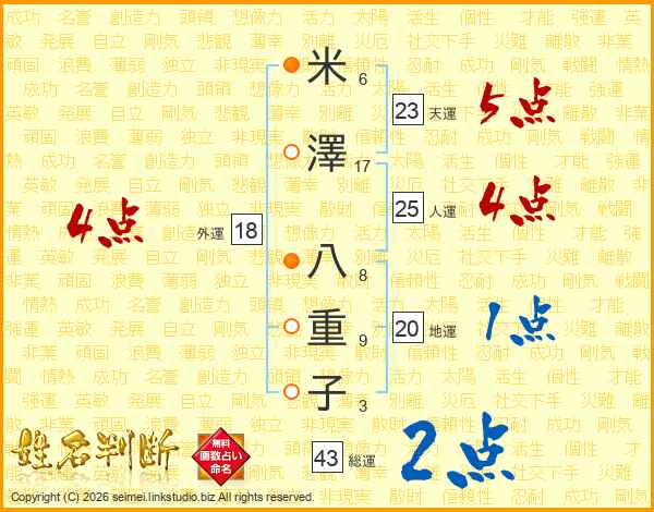 米澤八重子さんの外運は18画の4点!
