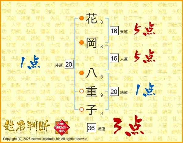 花岡八重子さんの総運は36画の3点!