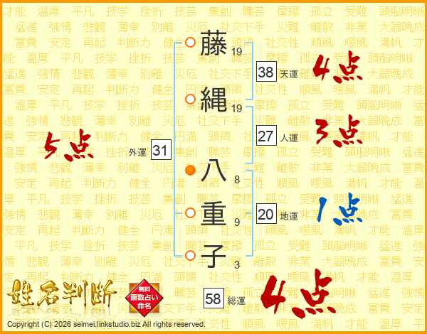 藤縄八重子さんの総運は58画の4点!