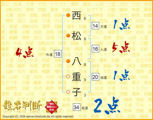 西松八重子さんの外運は18画の4点!
