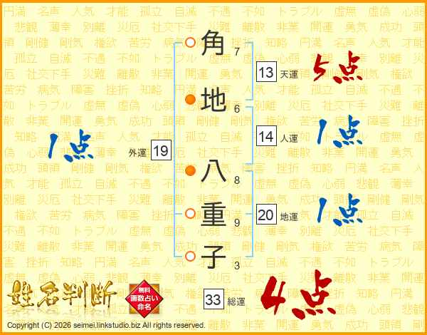 角地八重子さんの天運は13画の5点!