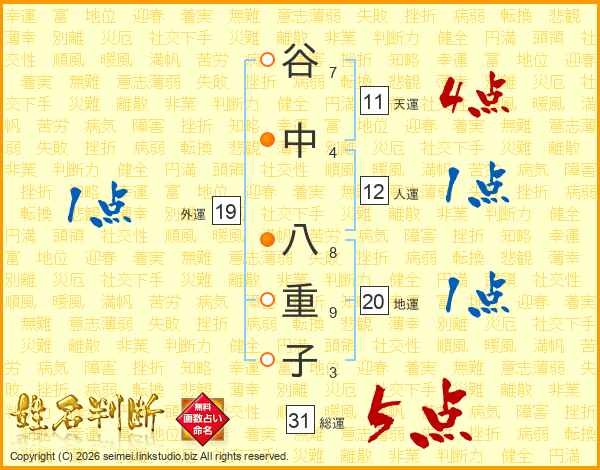 谷中八重子さんの総運は31画の5点!