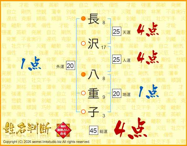長沢八重子さんの人運は25画の4点!