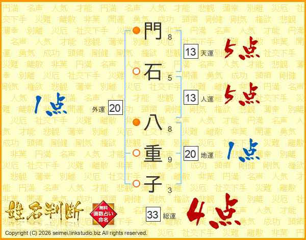 門石八重子さんの総運は33画の4点!