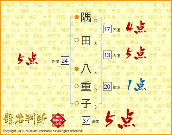 隅田八重子さんの外運は24画の5点!