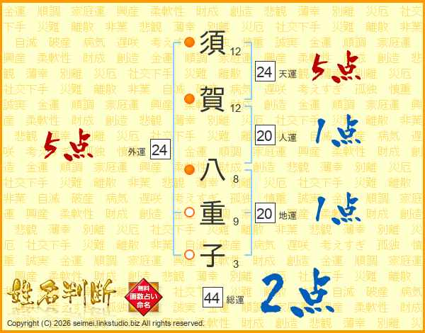 須(12画)賀(12画) 八(8画)重(9画)子(3画)