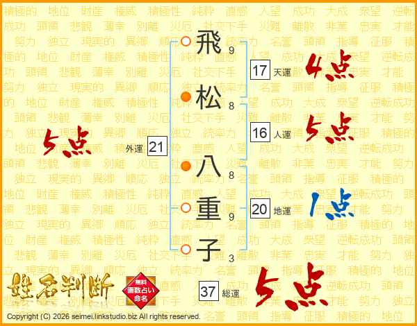 飛松八重子さんの総運は37画の5点!