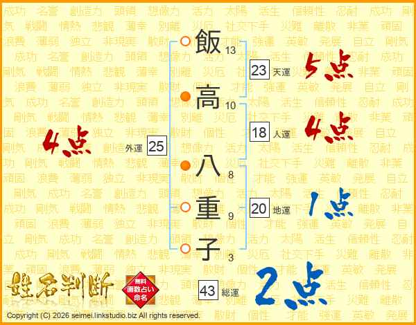飯高八重子さんの総運は43画の2点!