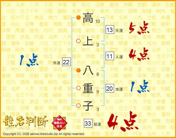 高(10画)上(3画) 八(8画)重(9画)子(3画)