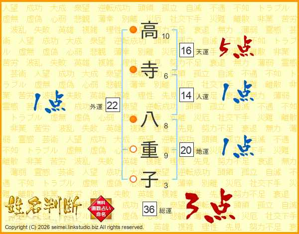 高寺八重子さんの総運は36画の3点!