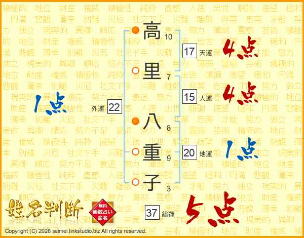 高里八重子さんの総運は37画の5点!