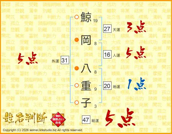 鯨岡八重子さんの外運は31画の5点!
