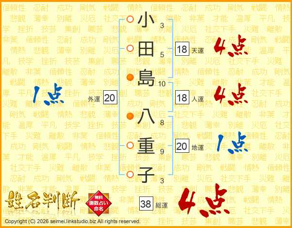 小(3画)田(5画)島(10画) 八(8画)重(9画)子(3画)