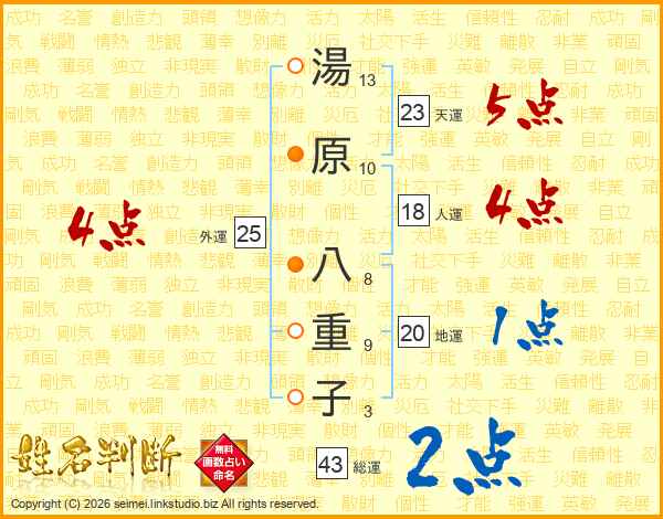 湯原八重子さんの天運は23画の5点
