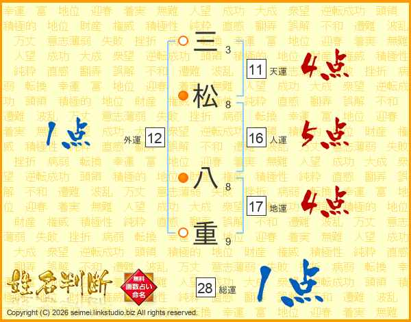 三松八重さんの総運は28画の1点!