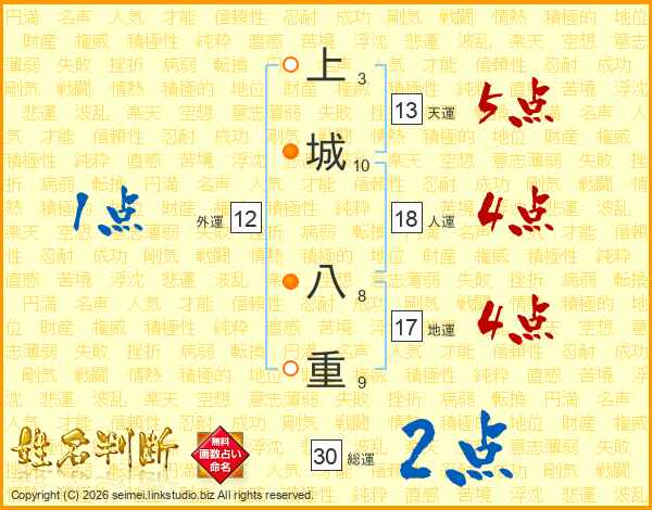上城八重さんの天運は13画の5点!