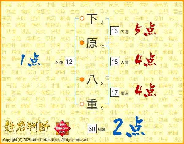 下原八重さんの総運は30画の2点!