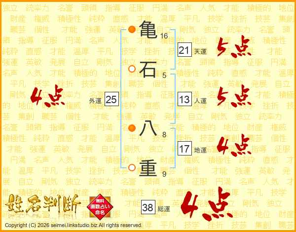 亀石八重さんの総運は38画の4点!