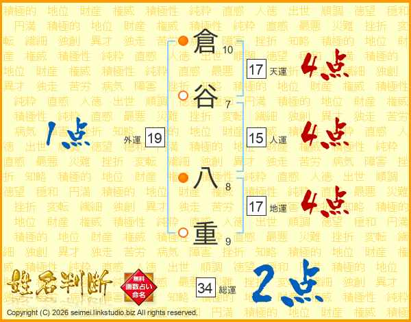 倉谷八重さんの天運は17画の4点!