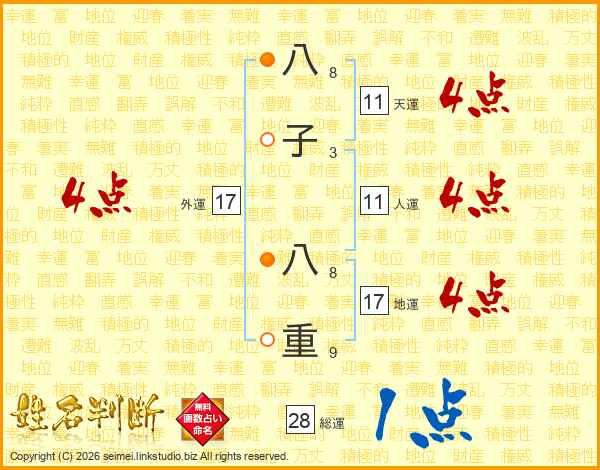 八子八重さんの外運は17画の4点!