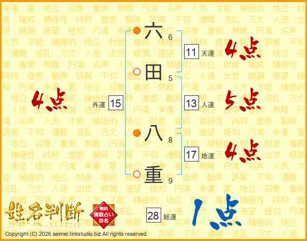 六田八重さんの総運は28画の1点!