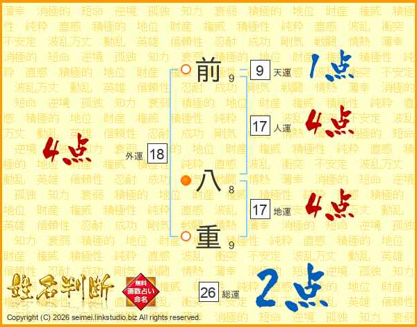 前八重さんの総運は26画の2点!