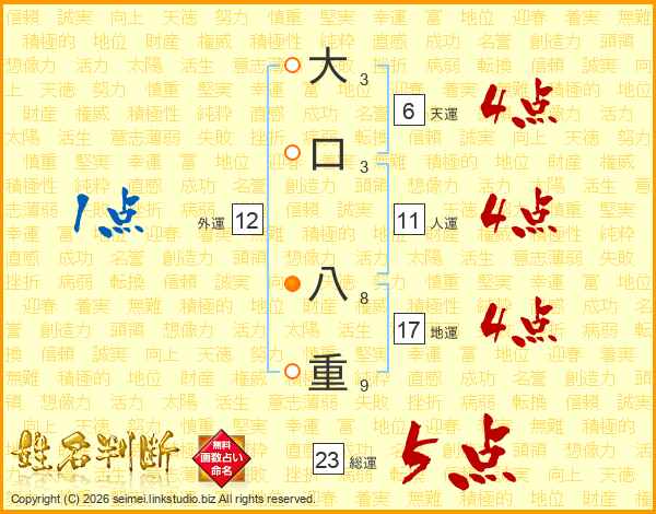 大口八重さんの総運は23画の5点!