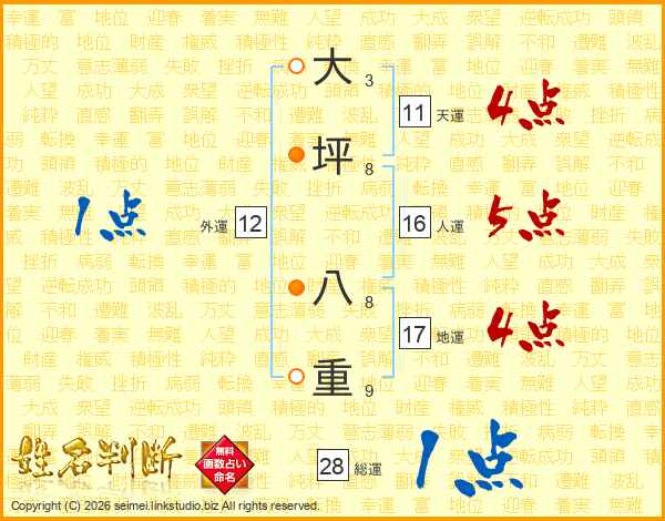 大坪八重さんの天運は11画の4点!