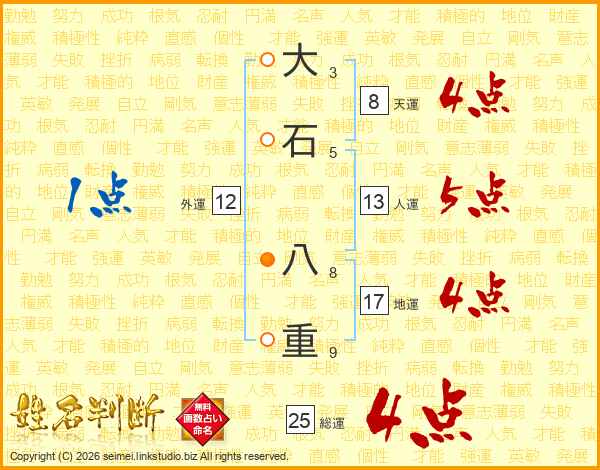 大石八重さんの総運は25画の4点!