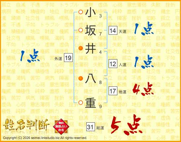 小(3画)坂(7画)井(4画) 八(8画)重(9画)