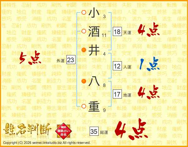 小(3画)酒(11画)井(4画) 八(8画)重(9画)
