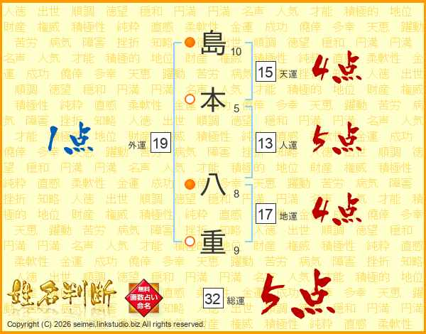 島本八重さんの総運は32画の5点!